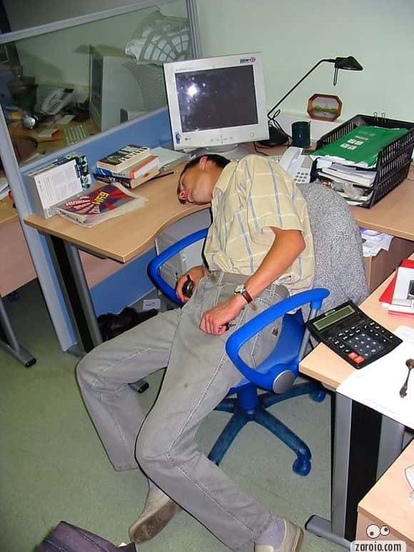 9. "Isto é só um cochilo de 15 minutos para recuperar as energias, como foi ensinado naquele curso de gerenciamento do tempo que vocês me mandaram fazer."